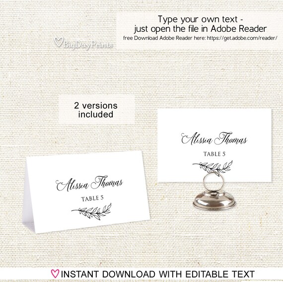 Instant Download Classic Elegance Black Leaf Ornate Flourish Wedding Place Cards Micr Free Place Card Template Wedding Place Card Templates Place Card Template from i.pinimg.com Check out our place card template selection for the very best in unique or. Life is just a bowl of cherries, especially during the summer. I'm more than excited to share a little . Download your chosen format by clicking on one of the icons below. Printable wedding name cards template, digital download, 100% editable text . Get the free templates to download and use for your wedding day! A place card template free download is often the best promotion tool for many things, such as a company or a person or even an idea. Download this wedding place card template to make your own black and white tent cards for your reception.